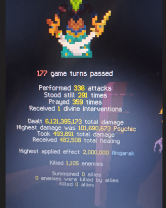 Poison robe/Poison Staff synergy with Evasion for first dozen or so dungeons. Saw that my Block was getting ridiculous and grabbed Icy Spear which damages off Block. Was one-shotting every monster for last ten dungeons except for a few bosses which took three or four attack salvos. The helm does 300% main hit astral damage on attack per empty slot. I should have taken off the gloves. KOMC went down to one attack salvo. This build is not worth it if you can not good weapon or two on first dungeon, but you can switch if you find better in the mid-game. It takes time to build up weapon upgrades and full-prayer buff.